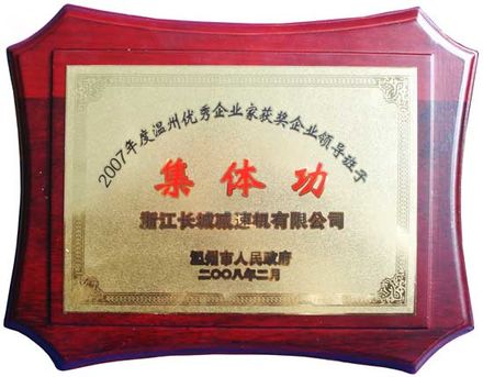 “2007年度溫州優(yōu)秀企業(yè)家獲獎企業(yè)領導班子集體功” 榮譽牌匾