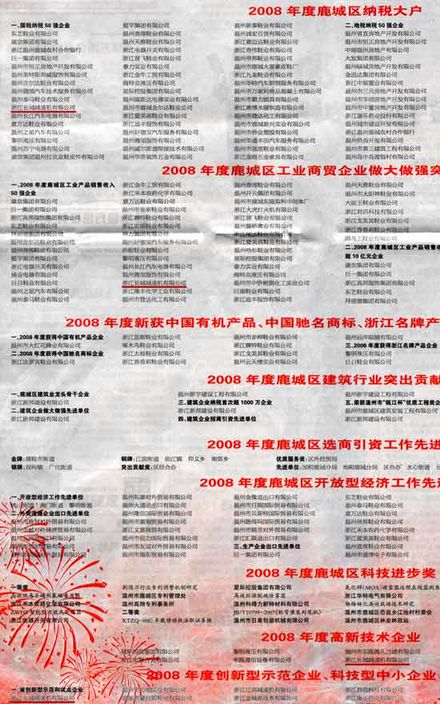 2009年2月6日《溫州日?qǐng)?bào)》12版專版對(duì)此鹿城區(qū)經(jīng)濟(jì)工作會(huì)議隆重召開(kāi)表示祝賀,并刊登了表彰內(nèi)容。