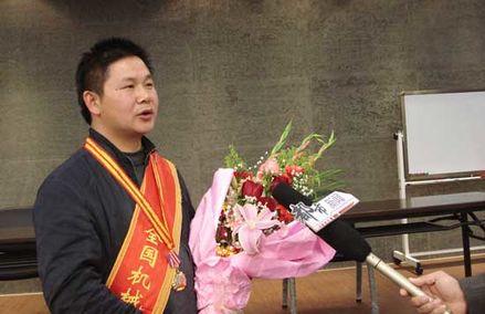 今天上午,獲得“全國(guó)機(jī)械工業(yè)勞動(dòng)模范”的公司裝配車(chē)間主任程家信同志從京載譽(yù)歸來(lái),公司全體員工舉行了隆重的歡迎儀式,并在行政二樓會(huì)議室召開(kāi)了歡迎會(huì)。會(huì)上,程家信同志向在場(chǎng)領(lǐng)導(dǎo)和員工談了參加表彰大會(huì)的情況和感受。公司董事長(zhǎng)虞培清與CEO呂本杰代表企業(yè)對(duì)程家信同志表示了祝賀,并希望公司其他員工以程家信同志為榜樣,依靠企業(yè)提供的良好平臺(tái),在本職工作中積極學(xué)習(xí),認(rèn)真工作,努力取得更大的榮譽(yù)。隨后,都市新聞?dòng)浾邔?duì)虞培清董事長(zhǎng)和程家信同志分別進(jìn)行了采訪。