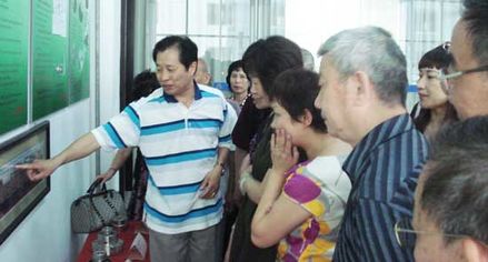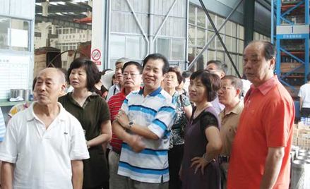 虞培清董事長向來訪區(qū)僑聯(lián)領(lǐng)導(dǎo)及僑胞介紹公司裝配車間主任程家信受賈慶林接見照片合影