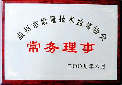溫州市質(zhì)量技術(shù)監(jiān)督協(xié)會(huì)常務(wù)理事牌匾