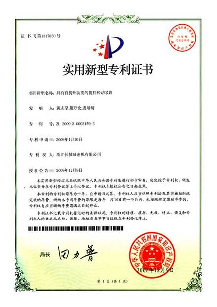 ZL 2009 2 0003159.3 具有自提升功能的攪拌傳動裝置