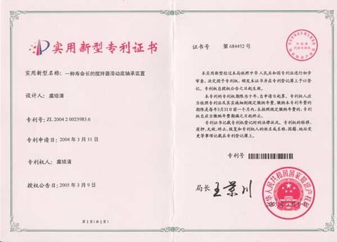 由我們公司設(shè)計生產(chǎn)的感應(yīng)式異步高溫磁力耦合傳動器和一種壽命長的攪拌器滑動底軸承裝置,獲實用新型專利。由此,我們公司已擁有專利15項。