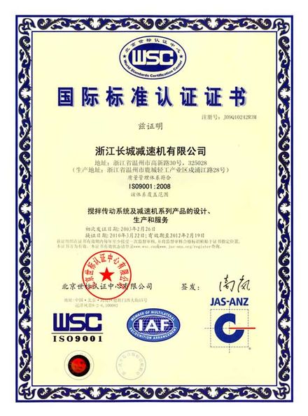 ISO9001:2008質(zhì)量管理體系認(rèn)證證書中文版
