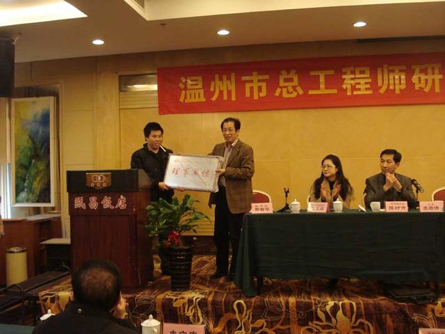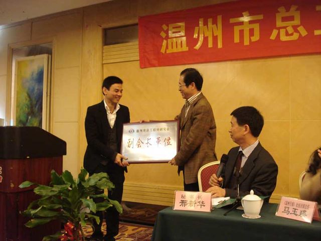 2011年12月16日下午,溫州市總工程師研究會(huì)2011年會(huì)員大會(huì)在溫州市甌昌飯店勝利召開。參加此次會(huì)議的有總師會(huì)會(huì)長虞培清(長城董事長)、秘書長邢新華、常務(wù)副會(huì)長陳時(shí)升、常務(wù)副會(huì)長黃小椿、市科技局局長徐順東、市質(zhì)量監(jiān)督局副局長梁世盛、市科協(xié)部長胡克華、市民間組織管理局代表周偉歷及其他總師會(huì)會(huì)員。會(huì)上,會(huì)長虞培清、秘書長邢新華等發(fā)表了講話。
