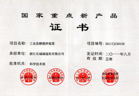 “工業(yè)發(fā)酵攪拌裝置”項(xiàng)目--“國(guó)家重點(diǎn)新產(chǎn)品”