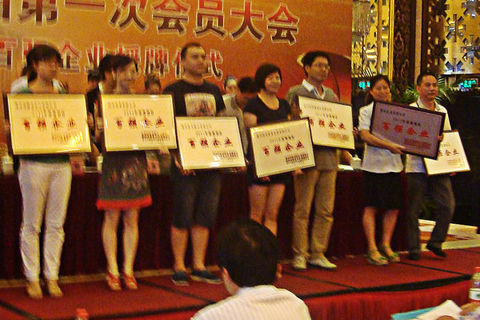 我公司辦公室主任姜立波(右三)代表企業(yè)接授區(qū)百?gòu)?qiáng)企業(yè)授牌