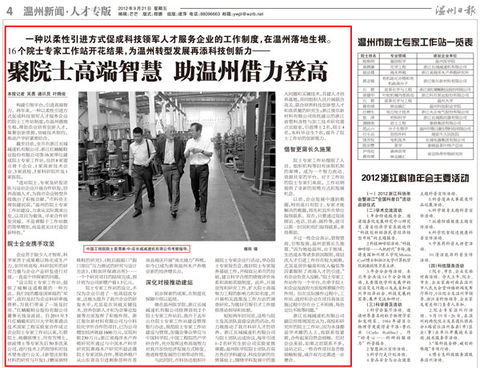 “聚院士高端智慧 助溫州借力登高”