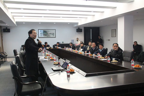 會議室里,虞董事長向大家介紹公司概況。肖書記頻頻點頭,稱贊我司。