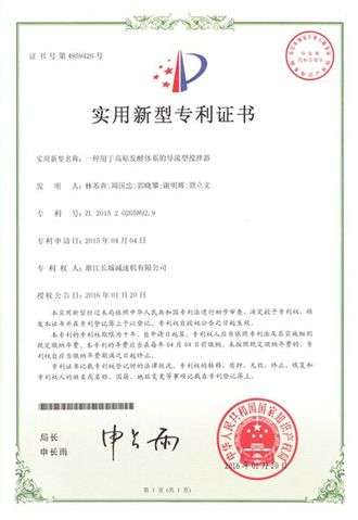 我司“一種用于高粘發(fā)酵體系的導(dǎo)流型攪拌器”獲國家實用新型專利