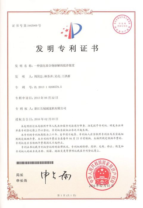 我司“一種強化聚合物溶解的攪拌裝置”獲國家發(fā)明專利