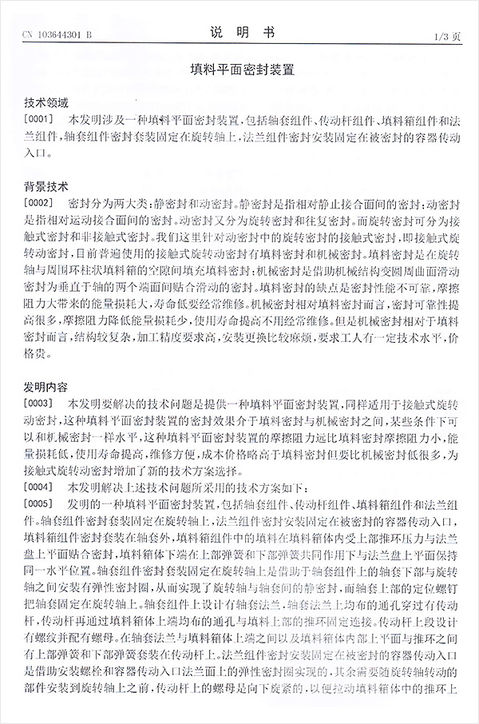 熱烈祝賀我司“填料平面密封裝置”獲國(guó)家發(fā)明專(zhuān)利