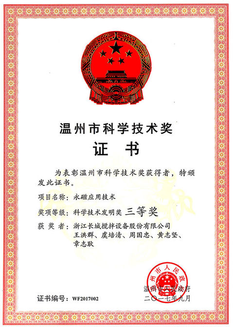 熱烈祝賀我公司“永磁應(yīng)用技術(shù)”項(xiàng)目榮獲科學(xué)技術(shù)發(fā)明獎(jiǎng)(三等獎(jiǎng))