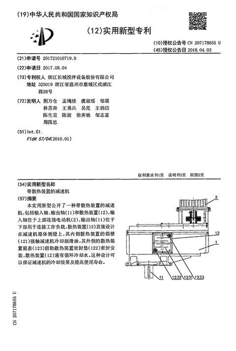 熱烈祝賀我司“帶散熱裝置的減速機(jī)”獲國家實(shí)用新型專利