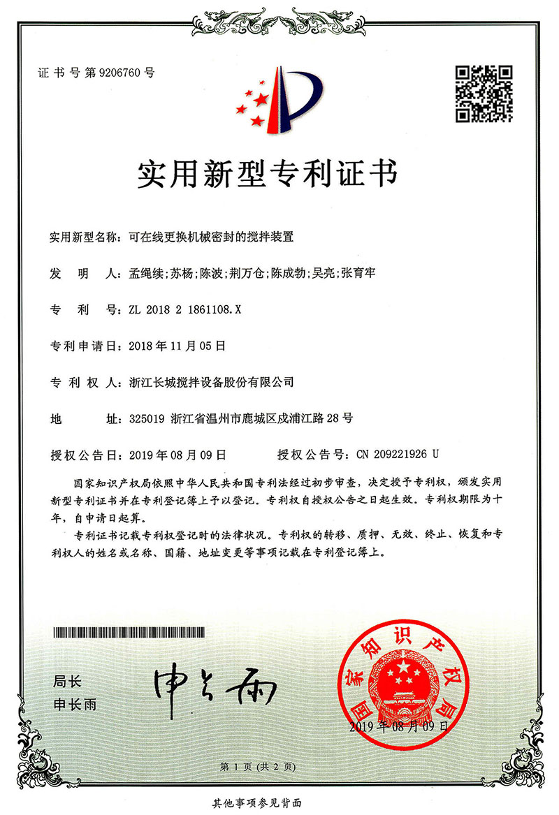 可在線更換機(jī)械密封的攪拌裝置
