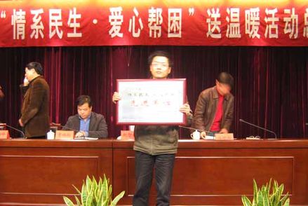 辦公室主任姜立波代表公司接受“2006年‘情系民生·愛心幫困’先進單位”榮譽牌匾
