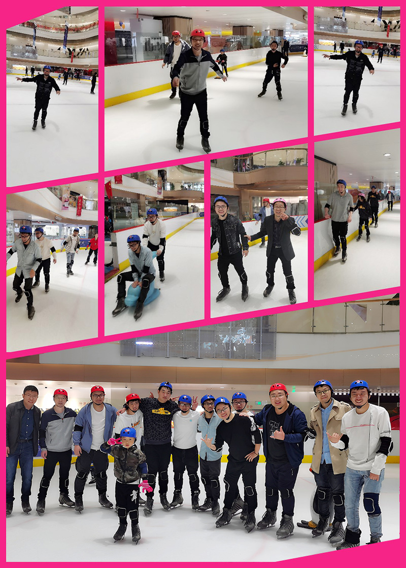 最后登場的是技術(shù)部,這次團(tuán)建旅游,他們選擇了勞逸結(jié)合的項(xiàng)目,上午先去了市區(qū)的滑冰場,穿上冰刀鞋,做好防護(hù)措施,在遙遠(yuǎn)的南方提前感受冰雪的快樂,歡聲笑語一片。相互攙扶,掌握平衡,歪歪倒倒,亦步亦趨,倒是與平時嚴(yán)肅認(rèn)真的樣子大相徑庭。