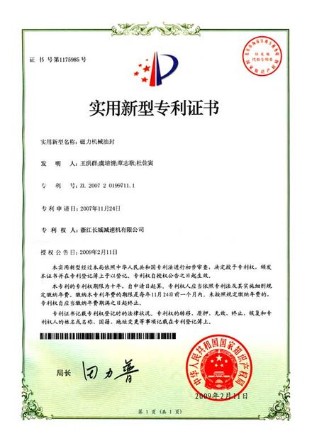 “磁力機(jī)械油封”獲實(shí)用新型專利證書