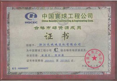 2005年6月3日,虞總應邀出席“第一屆中國寰球工程公司合格市場資源成員證書頒發(fā)儀式暨工程項目總承包研討會”,代表公司領取了中國寰球工程公司頒發(fā)的“合格市場資源成員證書”。長城減速機以其可靠的產品...