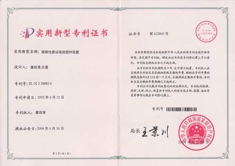 我公司兩項新技術(shù),周期性擺動高效攪拌裝置和底部導流式節(jié)能攪拌裝置,獲實用新型專利。