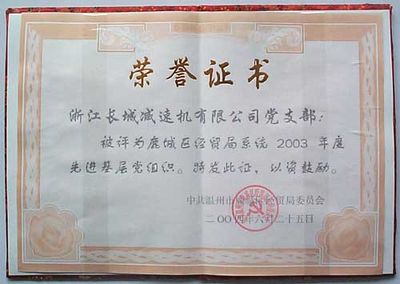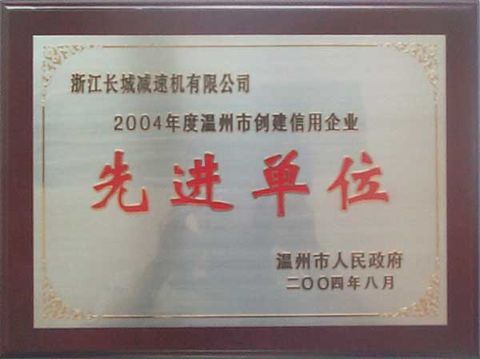 2004 年 8 月,溫州市人民政府命名我公司等97家企業(yè)為2004年度溫州市創(chuàng)建信用企業(yè)先進單位,并予以通報表彰。