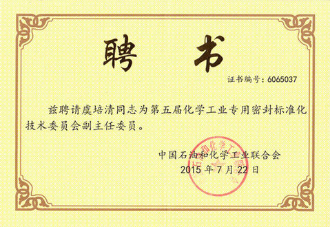 熱烈祝賀虞總被聘為“第五屆化學(xué)工業(yè)專用密封標(biāo)準(zhǔn)化技術(shù)委員會(huì)副主任委員”